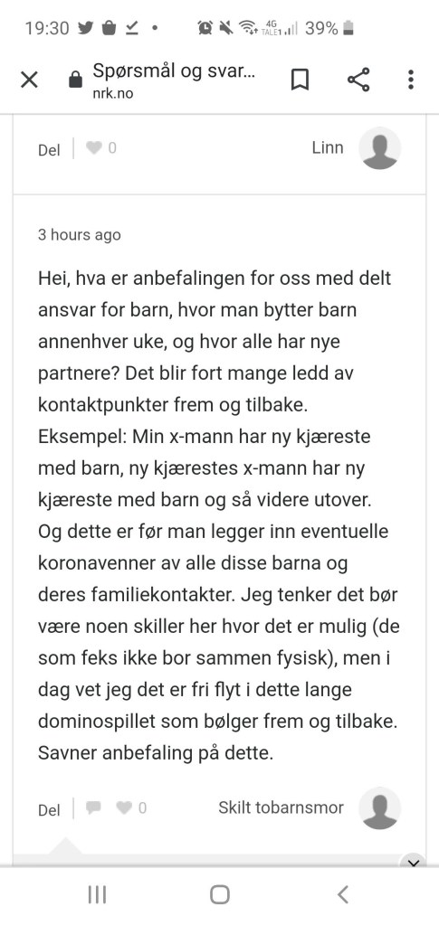 Jeg kom over dette på NRKs side hvor man kan stille spørsmål om korona: